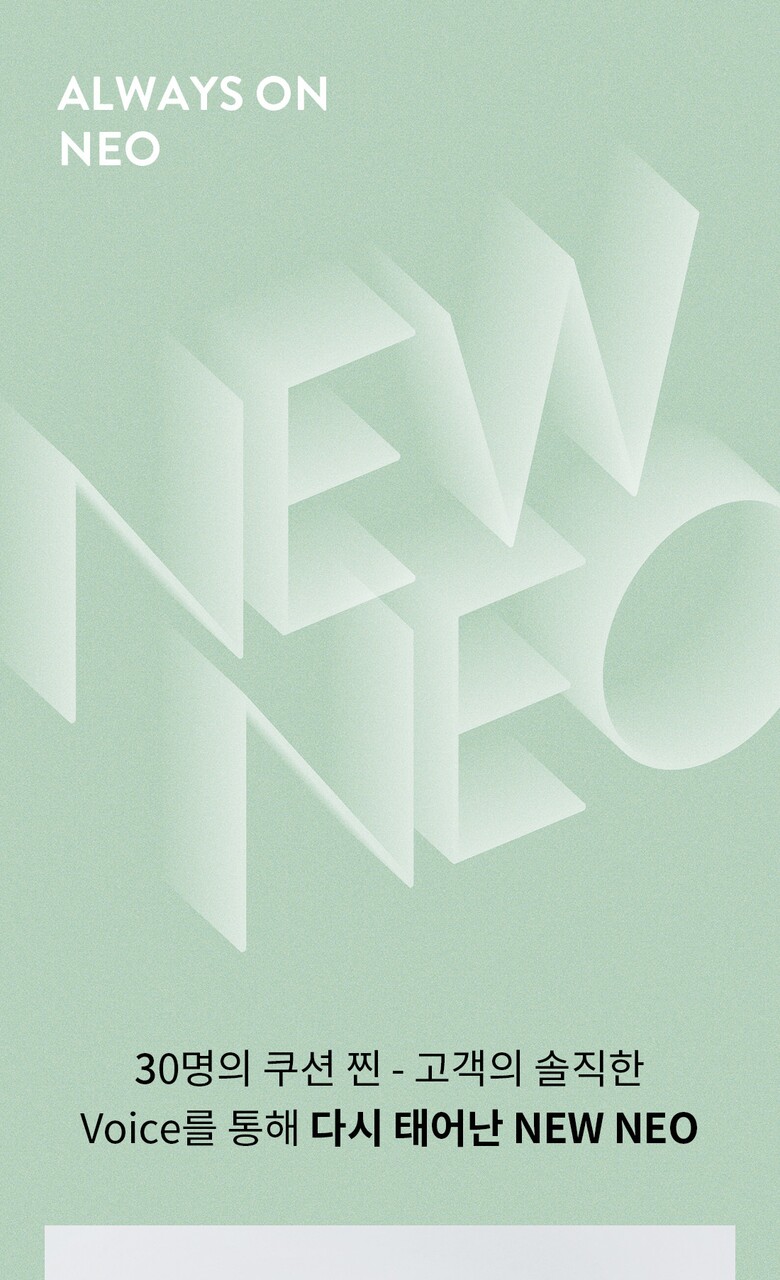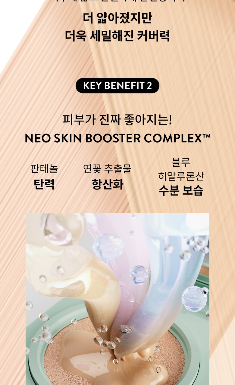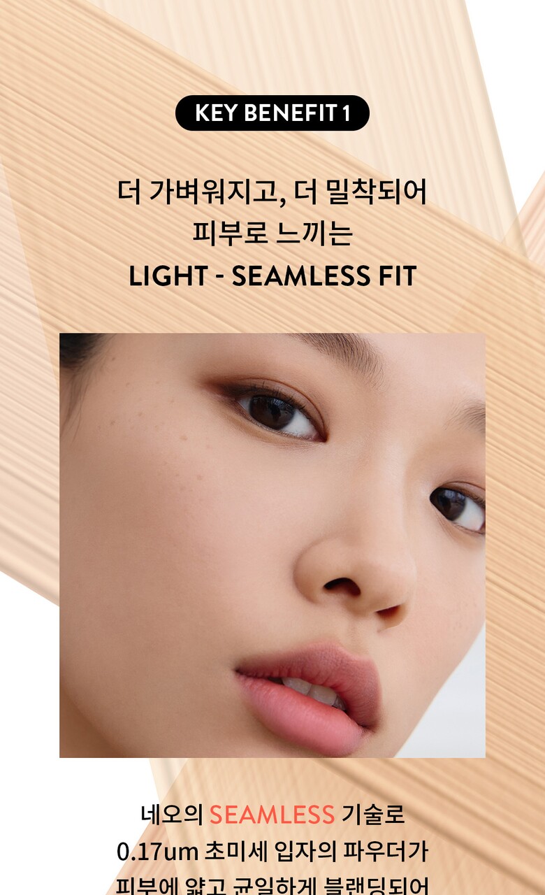 With Neo's SEAMLESS technology, 0.17um ultrafine particle powder is blended thinly and evenly on the skin, showing a coverage that has become thinner but more refined.